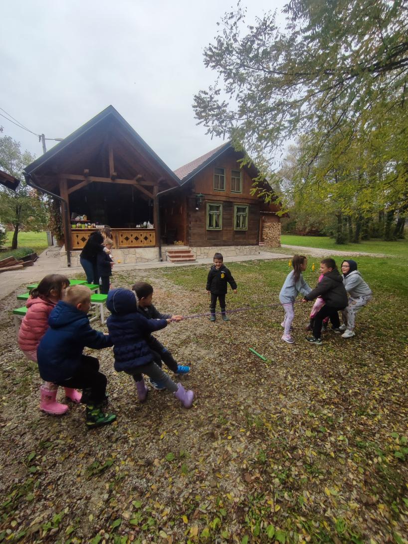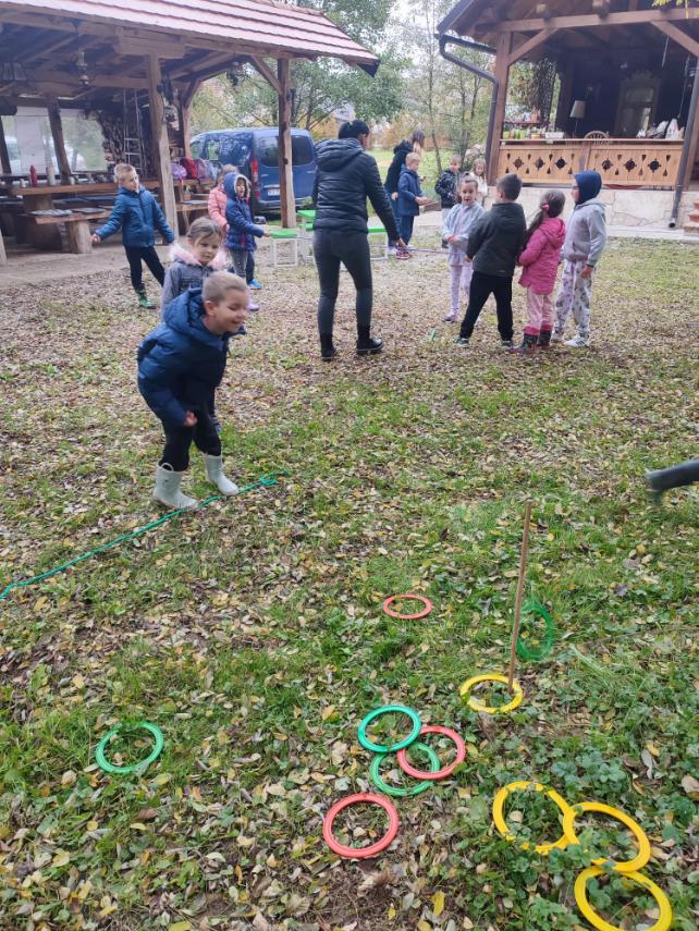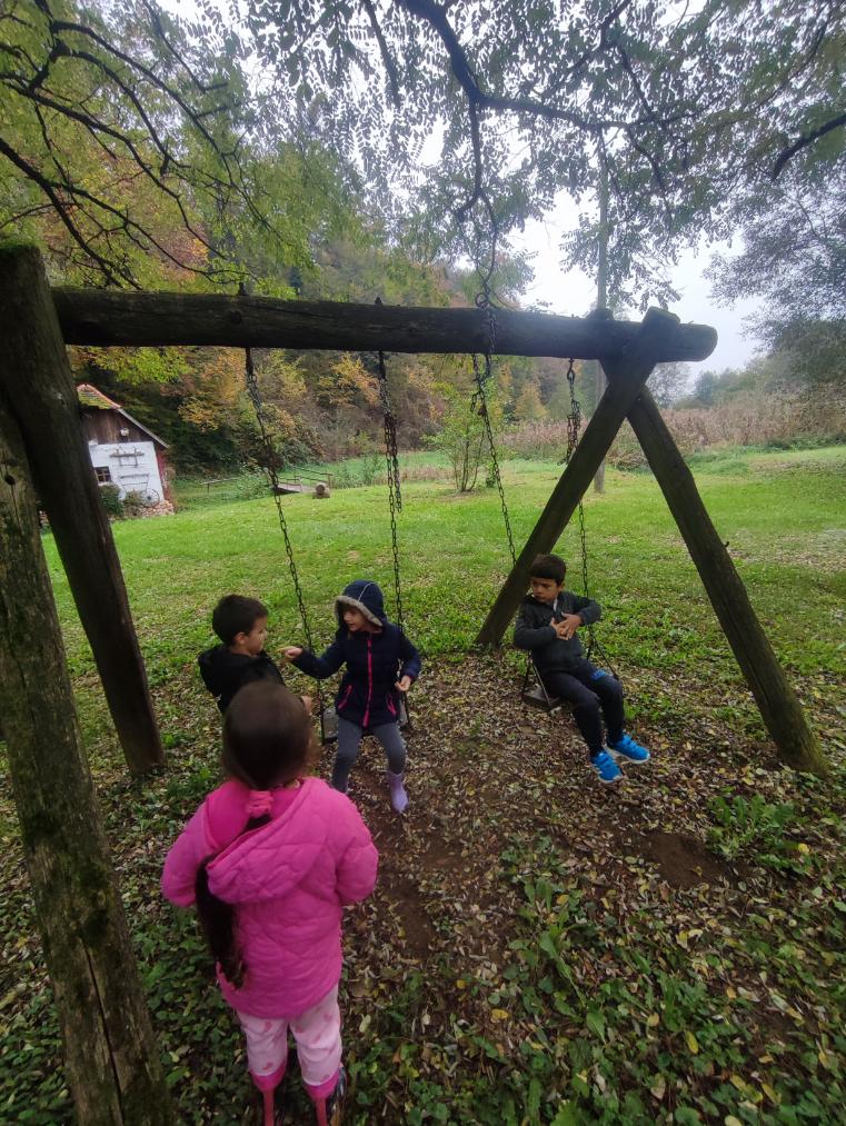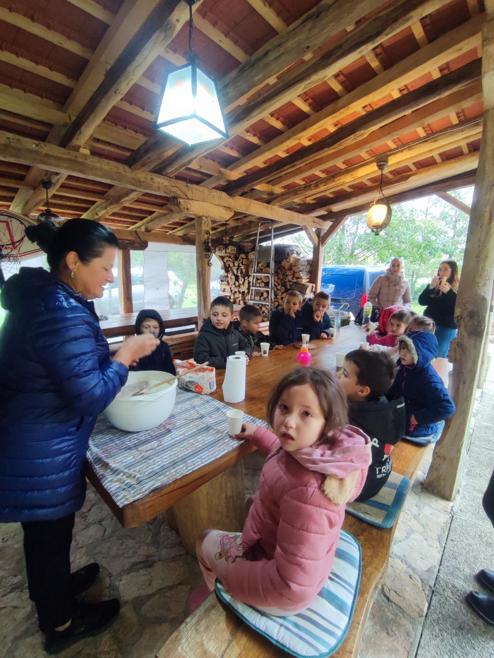 Domaćin nam je pokazao kako se mlin pokreće pomoću izvora vode, što nas je sve oduševilo. Domaćica Anka prikazala nam je kako se mijesi domaći kruh, a dok je kruh mirisno rastao pod pekom, djeca su se u dvorištu zabavljala uz razne društvene igre – igranje loptom, poligon s kolutovima, povlačenje špage i natjecanje sa žlicom i lopticom.