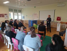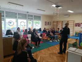 U našem vrtiću održano je edukativno predavanje za roditelje na temu sigurnosti djece u prometu, s posebnim naglaskom na sigurno prevoženje djece u automobilima. Predavanje je vodila predstavnica Ministarstva unutarnjih poslova Republike Hrvatske, koja je s roditeljima podijelila korisne informacije, praktične savjete i važne zakonske odredbe.